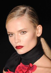 Lo último en peinados fashion son las más que clásicas colas de caballo pero ubicadas a la altura de la nuca.Se lleva la coleta baja con raya en medio, a un lado muy lisa y pulida, con efecto despeinado o alta con un toque engominado. Desde versiones muy sofisticadas a las más sencillas.