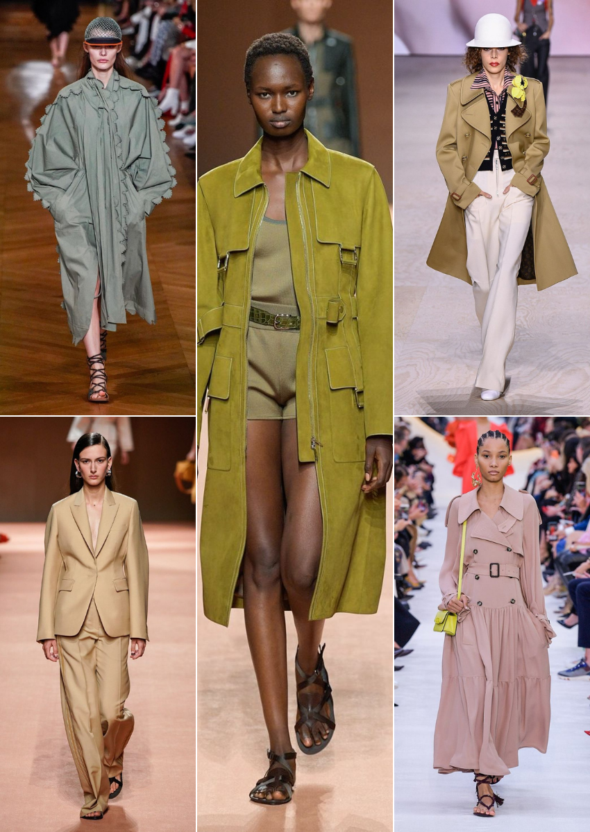 El trench, las siluetas caprichosas, el beige como estrella y los looks con un toque extravagantes.
