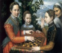 Sofonisba nació en 1532, en Cremona en el seno de una familia de la nobleza. Todas las hermanas estaban dotadas para las expresiones atísticas por lo cual su padre decidió que desarrollasen esa vocación. Es así como Sofonisba recibe la educación a través de los grandes maestros de su ciudad y comienza una actividad bastante particular.