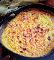 Pelar los choclos y desgranarlos. Luego triturar los granos en una licuadora o en una minipimer hasta que queden bien molidos, agregando leche para facilitar la maniobra. Algunos expertos prefieren utilizar para esta tarea la tradicional máquina de picar carne, ya que consideran que el grano rinde más que rallado y se evita dejar pasar las cascaritas más duras. Se coloca esta pasta en una cacerola de aluminio o de teflón (no usar las enlozadas porque se pega todo) y agregarle la manteca, la nuez moscada, la canela y sal a gusto. Se le puede agregar una cucharita de pimentón para darle color a la preparación. Se pone todo a fuego moderado revolviendo continuamente para que no se pegue y se lo retira cuando la pasta está bien espesa (un poco más de media hora aproximadamente). Luego se retira del fuego y se le agregan las yemas y una cucharada sopera de azúcar, el queso rallado y se mezcla bien.