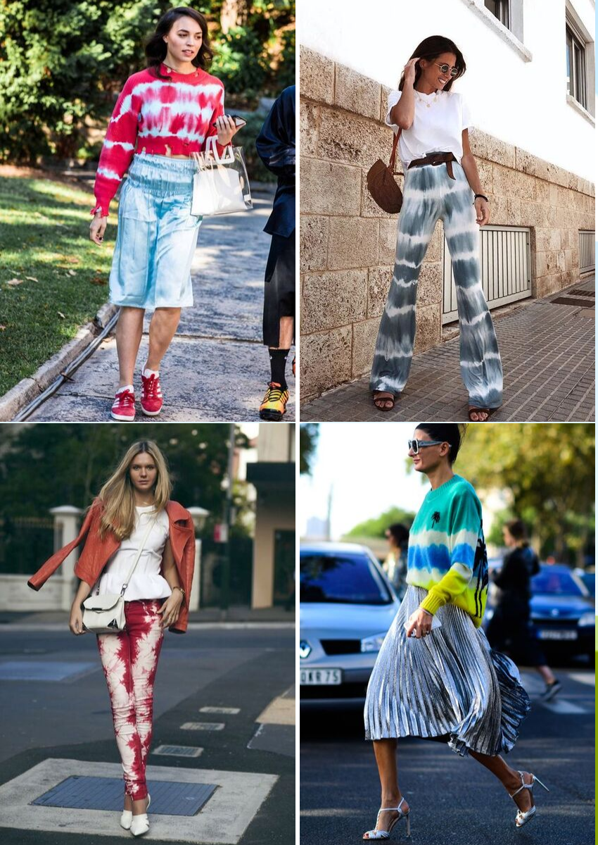 Esta tendencia boho es apta para todo tipo de prendas. Hasta puedes probar a hacerla en casa. En camisetas, shorts, minifaldas o pantalones. El denim es el rey del tie-dye.