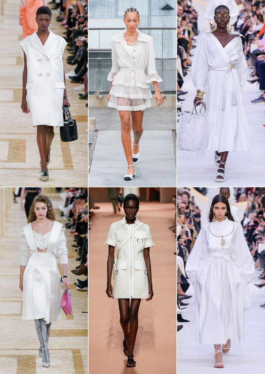 El blanco es sin duda el color de moda del verano 2020. No hay dress code que se le resista. Vestidos en total white, minimal o con volúmenes y plisados. Las joyas XL y las sandalias planas son sus mejores aliados.Visto en: Valentino, Miu Miu, Bottega Veneta, Hermés…